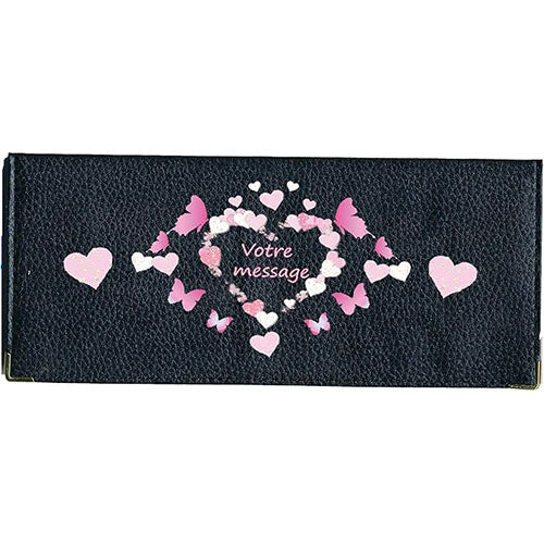 Porte chéquier et carte en cuir noir pour femme personnalisé avec Crayon fleurs