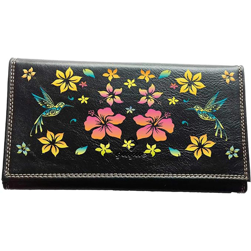 Compagnon Tout-en-Un Porte Chéquier en Simili Cuir design colibri orange