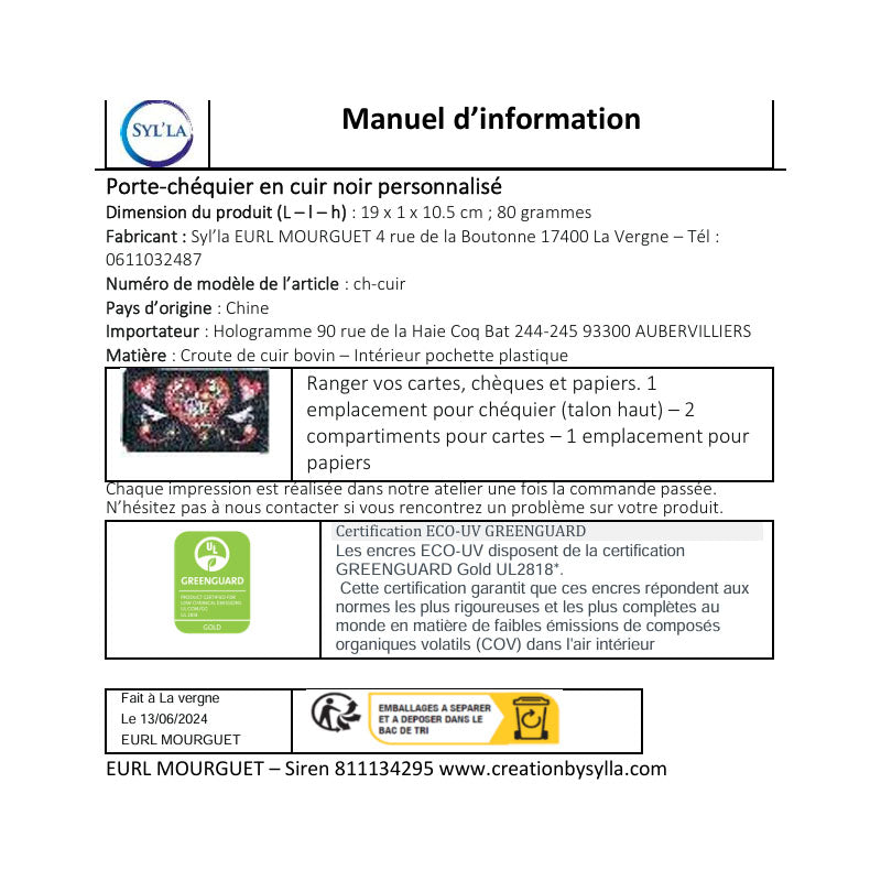 • Impression UV du motif sur la face avant du porte chéquier, ajoutant une touche personnelle et unique.