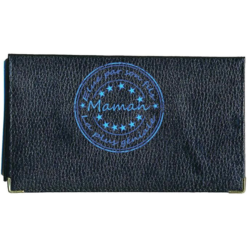 Porte chéquier et carte en cuir noir pour maman personnalisé Elu pas son fils