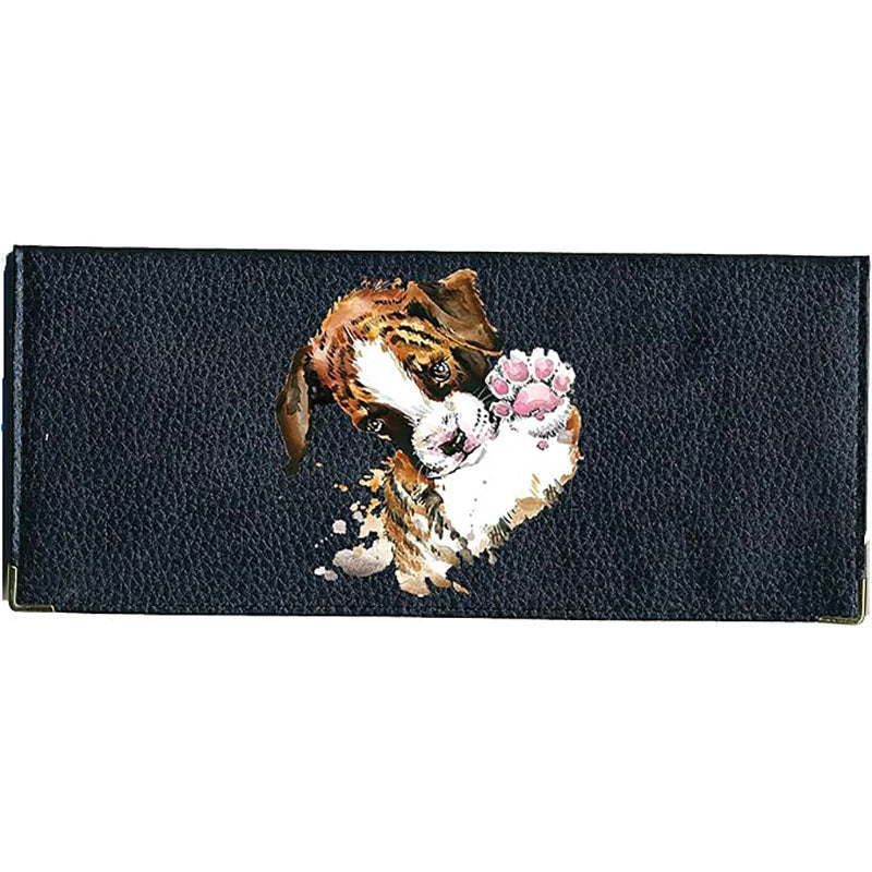 Porte chéquier long en cuir noir personnalisé avec un chien