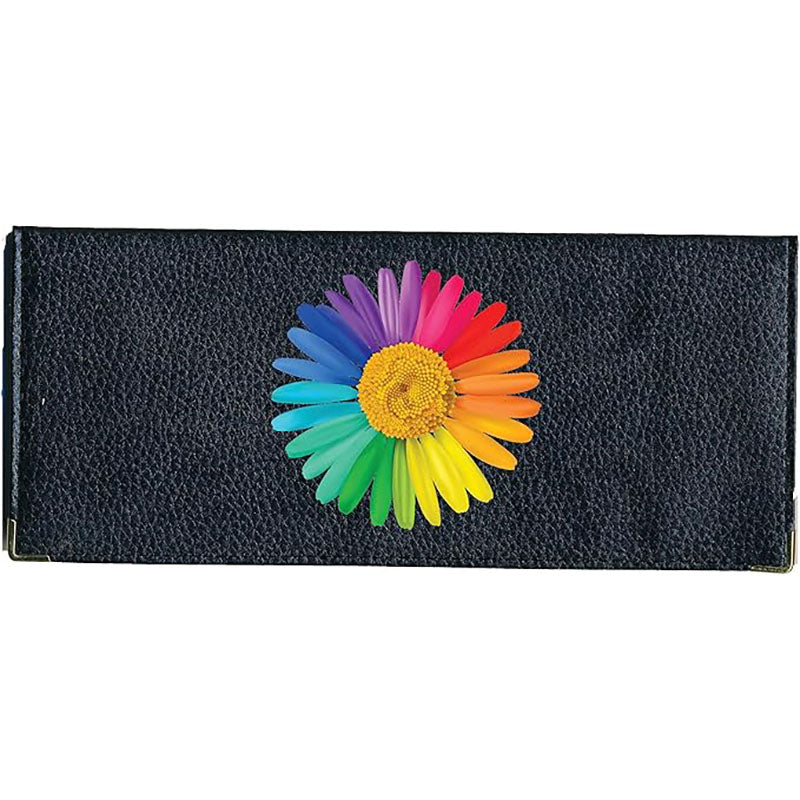 Porte Chéquier long en cuir noir personnalisé avec personnalisé avec Marguerite Arc en Ciel