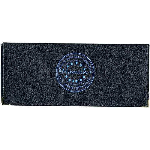 Porte Chéquier long en cuir noir personnalisé Maman géniale Enfants