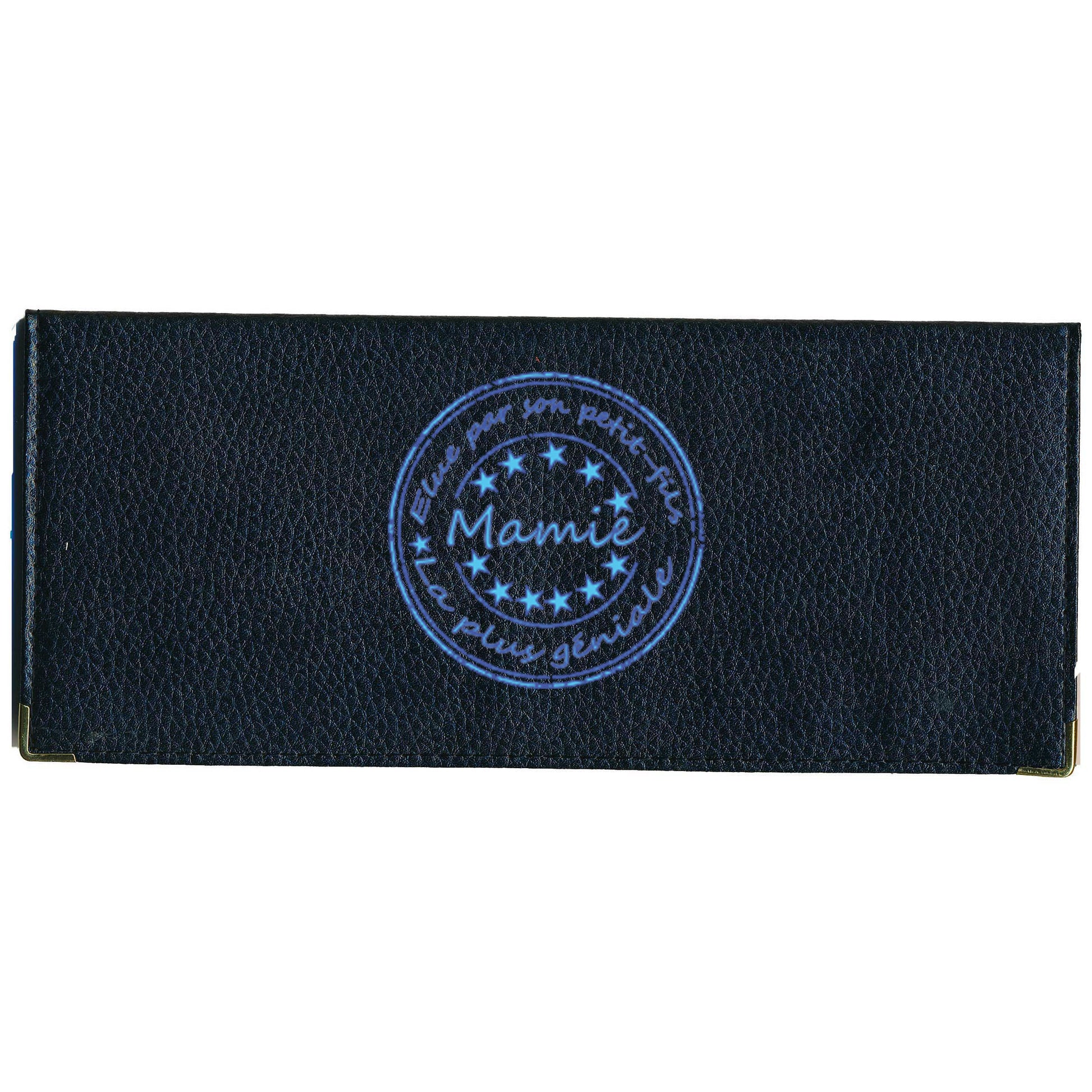 Porte Chéquier long en cuir noir personnalisé avec personnalisé Mamie Elue par son petit fils