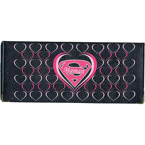 Porte Chéquier long en cuir noir personnalisé S Maman